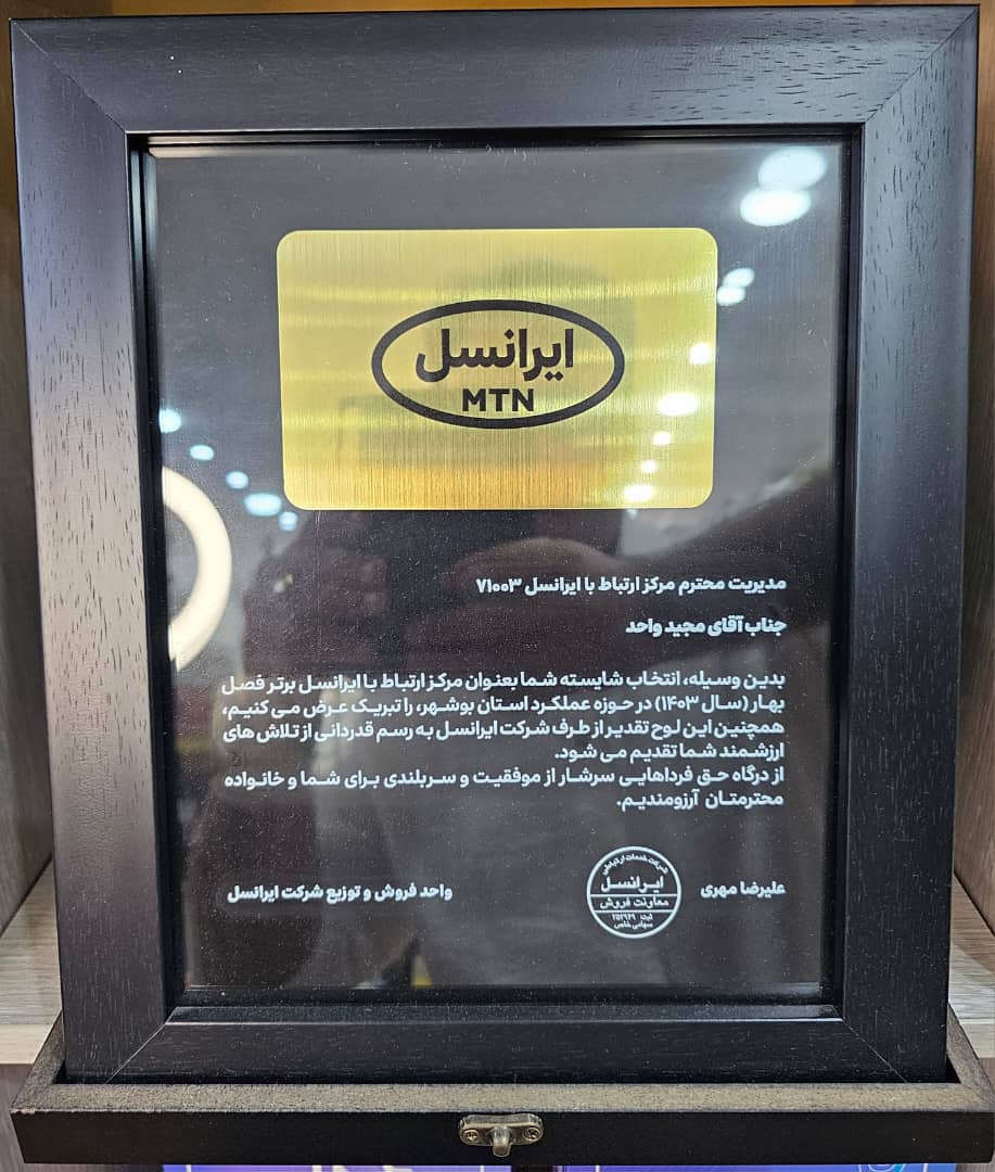 🏅 کسب عنوان «برترین نماینده ایرانسل در استان بوشهر» طی سال‌های متوالی